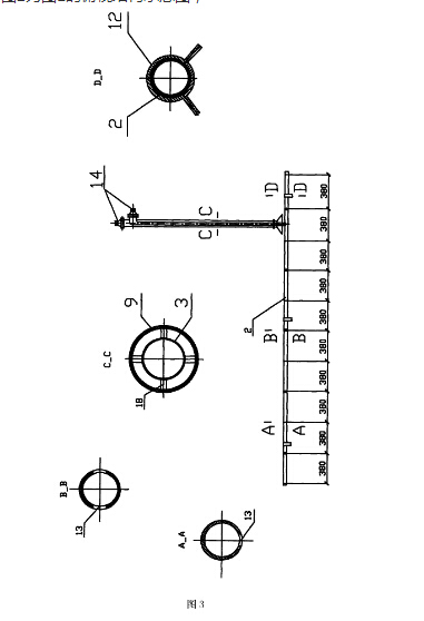 图3为喷射管和吸油管的组合结构示意图及其A-A,B-B,C-C,D-D剖面示意图。