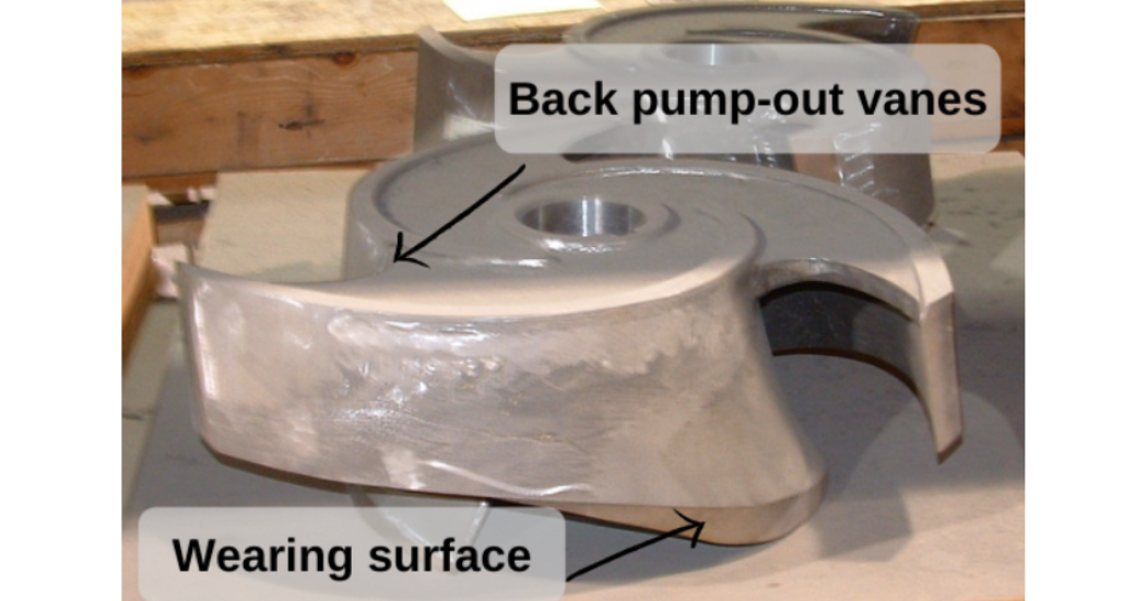 然而,随着叶轮向吸入耐磨板的方向调整,叶轮后面的间隙会增加。大多数开式叶轮在非泵送侧都有小叶片,称为“背抽叶片”。这些叶片就像另一个离心泵一样,其目的是保持填料函的低压。如果没有这些叶片,填料函压力将接近泵的排放压力,这可能导致填料污染和填料寿命降低。