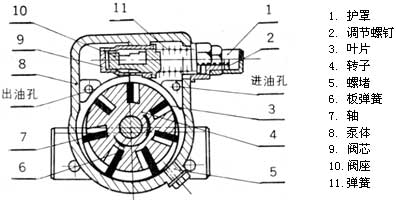 (4)为维持正常出油效率及压力,可利用叶片泵上溢流阀的调节螺钉进行油路的压力调节。